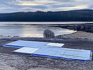Das angrenzende Seeufer ist topografisch mindestens 15 Fuß tiefer als das Baugelände. Dadurch wird die Bodenplatte aus Holz nicht beeinträchtigt, sodass eine dauerhafte Standsicherheit gewährleistet ist.