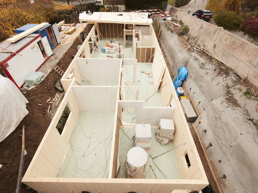 Houses without heating and without air conditioning make an important contribution to climate protection. An even greater potential for energy savings lies in the choice of building materials. Wood is already widely used in building construction. The next step is to avoid climate-damaging building materials such as steel and concrete - including in basements and floor slabs. In order for basements to be mass-produced from wood in the future, a number of research questions need to be answered. A research project of the Bern University of Applied Sciences together with Timbatec, TS3 and other business partners is currently addressing these questions. A start-up is to be founded from the group of research partners, which will be operationally active from 2023.