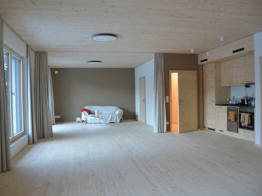 Full house at the open house. Over 180 people wanted to see and feel the basement made of wood. The BMW15 apartment building in Thun is an innovative showcase project: It stands on the first basement made of wood in Switzerland, does not require heating and was built entirely without concrete.